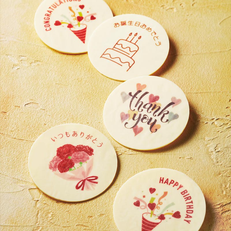 想い伝えるメッセージ入りチョコプレート4種より、1枚(300円)お選び頂けます。